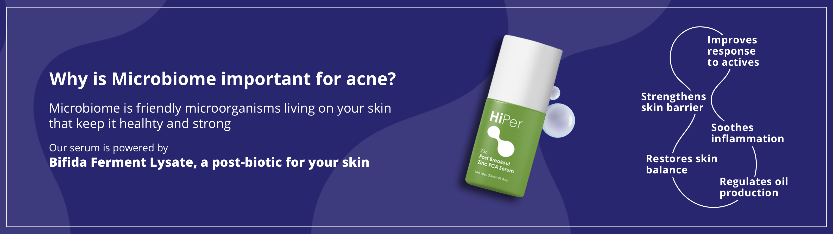 HiPer delivers high performance skincare with multi-active formulations precisely dosed to target your skin concerns from every angle. Unlike single-ingredient products, HiPer fights acne on multiple fronts—killing bacteria, repairing the skin barrier, and hydrating deeply. It also nurtures your skin's microbiome with pre, pro, and post-biotics for balance and resilience.